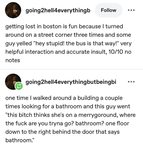Bostonites will give you the shirt of their back but will berate you the entire time for being so fucking stupid that now I gotta give you my shirt you fucking idiot, don’t you think at all?