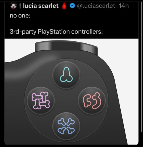 I hate this mainly due to the number of penises per button. The playstation buttons are actually numbered based on the number of lines associated with the symbol (circle = 1, cross = 2, etc). This flys directly into the face of that. The circle button needs to have 1 dick where the tip curves and touches the balls, and the triangle needs to have 3 dicks. 0/10