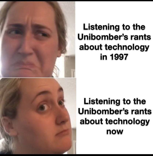 I never said don’t read it, but comparing and contrasting is not what is happening. Its like when Osama Bin Laden’s manifesto or whatever was making the rounds and everyone was like “ya know he makes some good points.” Everyone just keeps parroting the points of far-right extremists cause they pointed out a pretty universal issue like imperialism, consumerism, environmental destruction, etc. If the only perspective that gets spread is that of a far-right nutjob, then it normalizes the problematic parts of their perspective. Its always just begins and ends with “the unabomber made some good points.” Not “the unabomber made some good points, but Bookchin is more practical and not a eco-fascist.”