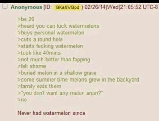 dazzledbeans @lemmy.world to Lemmy Shitpost@lemmy.world · 3 years agoMelons right.lemmy.worldimagemessage-square0linkfedilinkarrow-up10arrow-down10